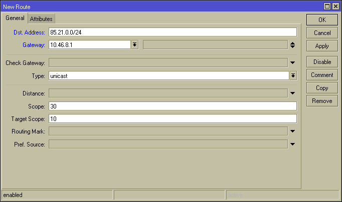 Первые две — подсети с VPN-терминаторами (справедливо только для Москвы, для других городов выясняйте самостоятельно). Вторые две — DNS-сервера (также справедливо только для Москвы). Остальные маршруты имеет смысл прописывать в случае, если вам нужны внутренние ресурсы локальной сети (DC, торренты, видеосервера и т.п.). Итак, добавляем четыре вышеупомянутых маршрута в роутер.
